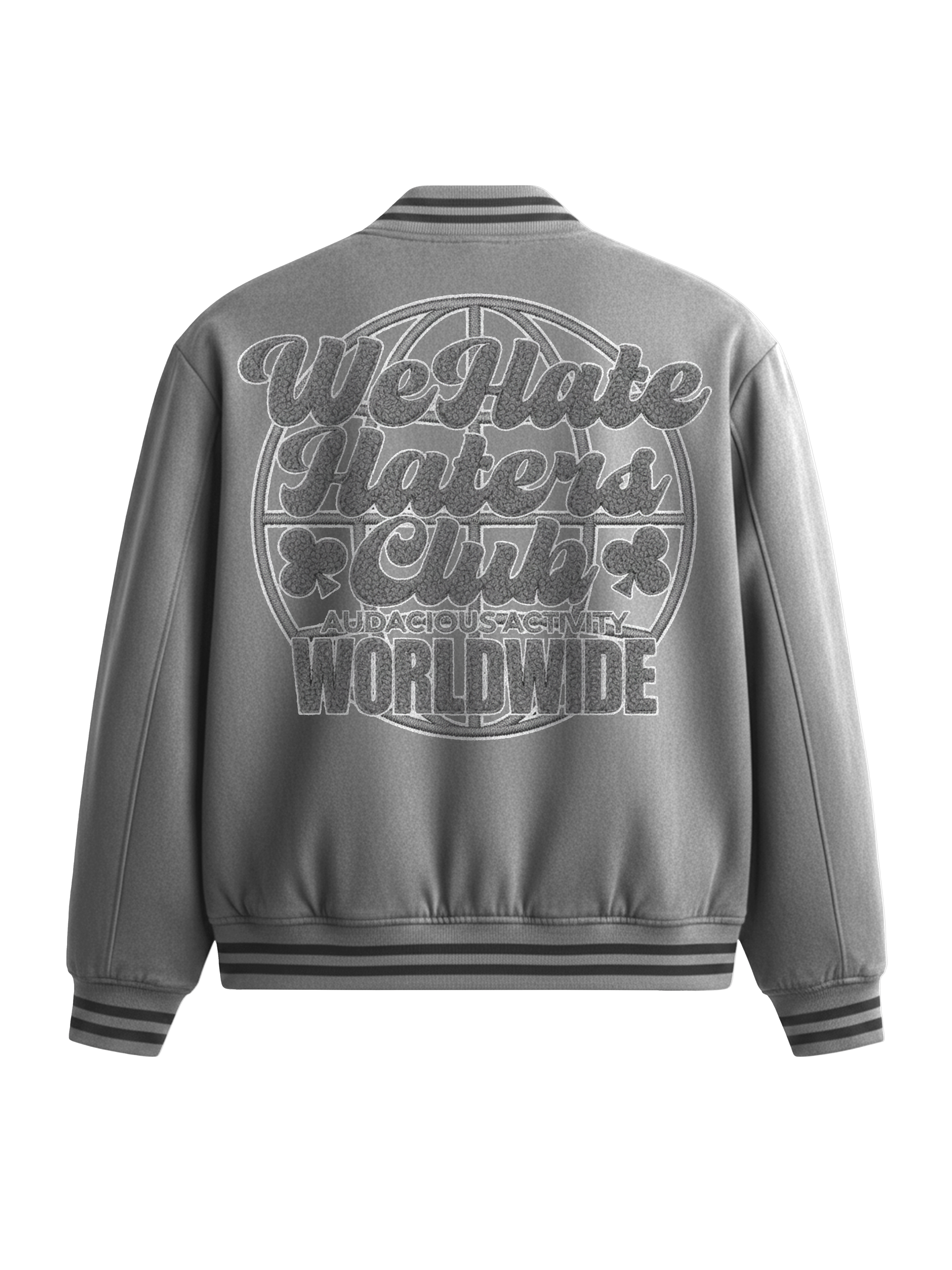 Expertly crafted with real leather, the #We Hate Hate Haters Club Grey Suede Jacket boasts high-quality construction and chenille embroidered logos. Limited quantities available, so secure yours now for a statement piece that shows your commitment to ending hate.