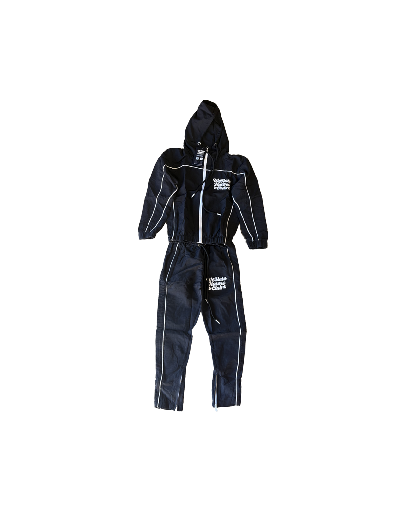 This #We Hate Haters Club Windbreaker features lightweight crinkle nylon fabric with vintage-inspired piping lines and embroidered logos for a timeless look. Its innovative design allows you to convert the straight pants into a flare silhouette, making it a versatile staple that adapts to your style while providing comfort and durability. Perfect for those seeking a bold yet functional statement piece.